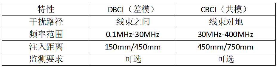 BCI适合评估线束对中低频主导的传导性/感应性耦合共模电流干扰的抗扰度,