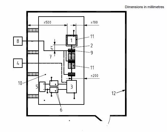 接地板:材料为0.5mm(最小)后的铜,黄铜或者镀锌钢材;尺寸最小为1000mm宽,1500mm长或者超出被测物200mm;接地材料的阻抗应不大于2.5豪欧,间隔应不大于300mm。