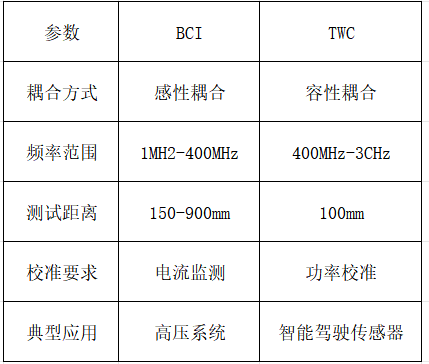 二者都适用于各类车辆(传统燃油车、电动车EV、混动车HEV)的电子电气部件线束抗扰度测试。在机动车零部件EMC抗干扰测试中,BCI和TWC各有优势,选择取决于具体测试需求和频段范围。随着TWC成为高频EMC测试重要手段,设备选型很关键。正确的测试设备和方法能提高效率、确保产品电磁兼容性、降低合规风险。
